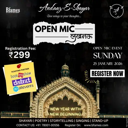 Manch-e-Irshad is Bfames' exclusive open mic event celebrating poetry, storytelling, and soulful expression. It’s a free, invite-only platform for passionate performers to share their voice, connect with like-minded artists, and own the stage.